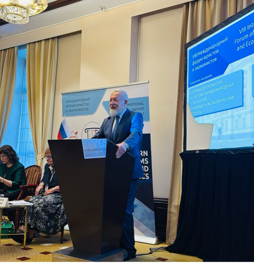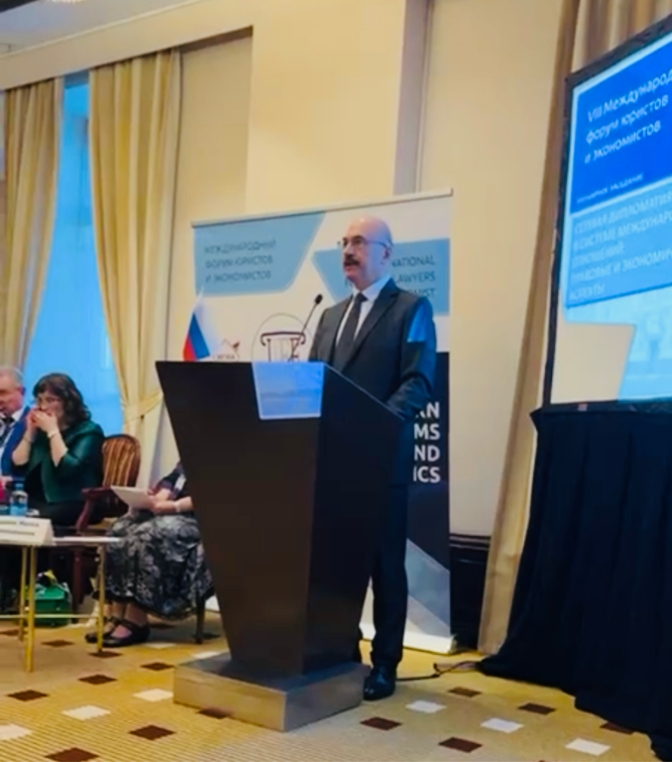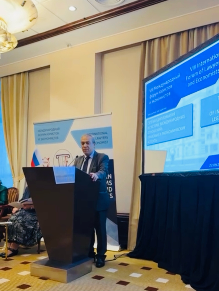أقام المنتدى الدولي للمحامين والاقتصاديين دورته الثامنة في موسكو والتي كانت حول التحديات الحديثة في القانون والاقتصاد ودور الدولة في التنظيم القانوني والاقتصادي لسياسة التكنولوجيا في ظل الظروف الجديدة للتعاون الدولي في دول البريكس والاتحاد الاقتصادي الأوراسي، والذي نظمته جامعة موسكو الحكومية للقانون “كوتافينا ” بحضور نائب رئيس الجامعة البروفيسور فلاديمير سينيكوف.